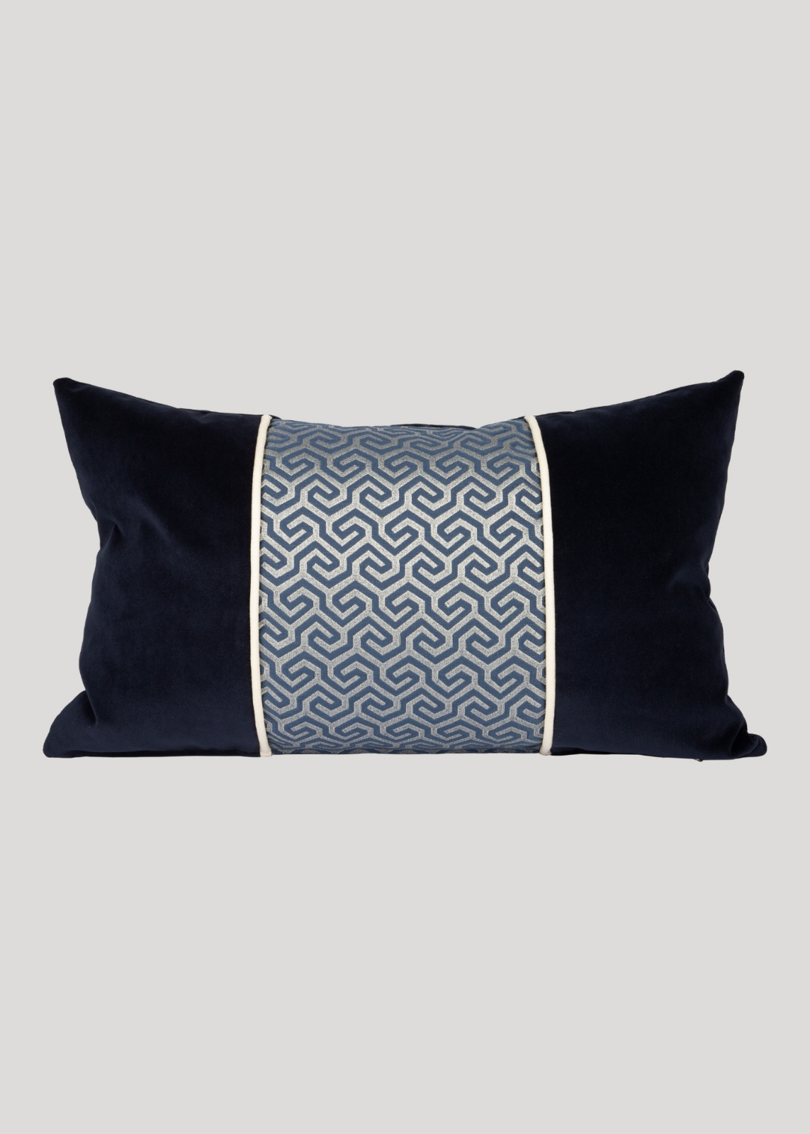 This design showcases the unique harmony of grey, white and navy blue. The cushion has been carefully designed for you, with velvet fabric used throughout. The combination of these two colors creates a unique beauty and will completely transform the atmosphere of the space where it is used.